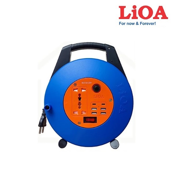 – Ổ Cắm Xách Tay Có Cổng USB Lioa XTDU10-2-15A thiết kế kiểu sách tay kéo tay quay tiện cho việc cầm và kéo dây